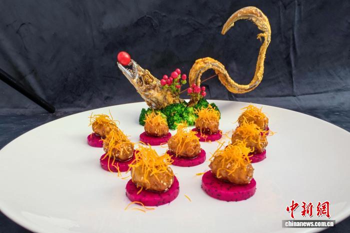 图为参赛菜品《酥坚缠丝带鱼卷》。中新社记者 刘忠俏 摄