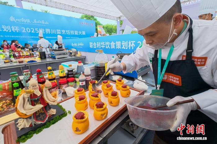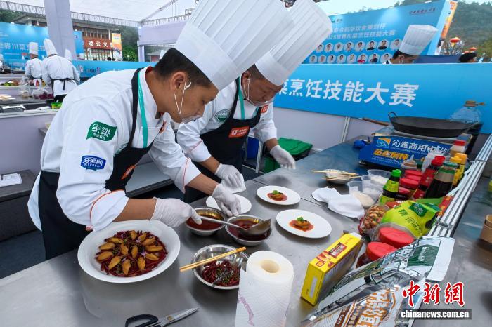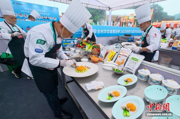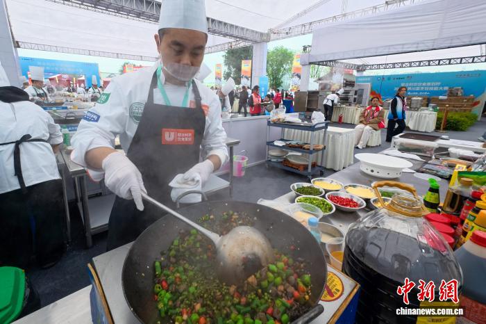 图为角逐现场参赛厨师正正在造做菜品。中新社记者 刘忠俏 摄