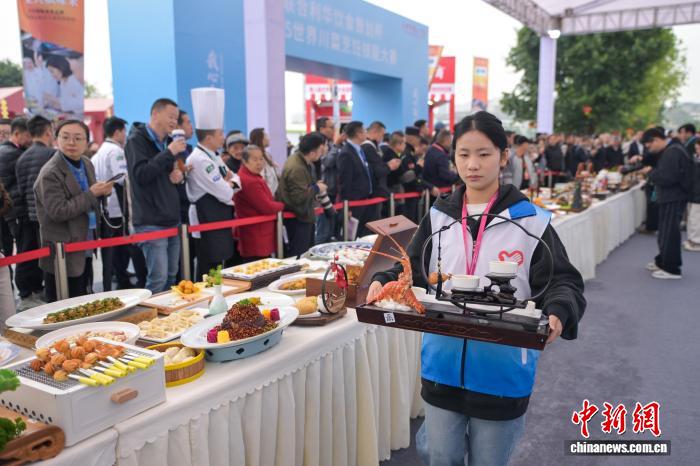图为任务职员将造做佳的参赛菜品收去铺区。中新社记者 刘忠俏 摄