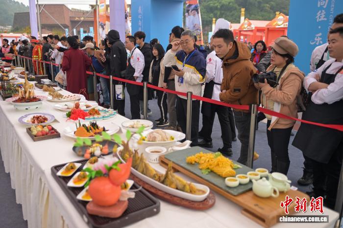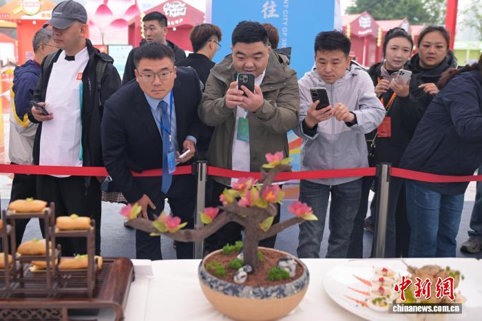 图为造做邃密的菜品《嘉州喷鼻海棠》吸收公众。中新社记者 刘忠俏 摄