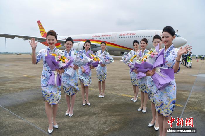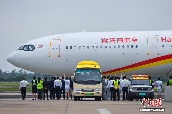 11月1日,海北航空新引入的1排挤客A330客机逆利落降正在海心好兰邦际机场,并安排于远期正式进入经营。据领会,那架齐新引入的空客A330飞机同设301个坐位,个中公事舱24个坐位,经济舱277个坐位。图为交机典礼现场。中新社记者 骆云飞 摄
