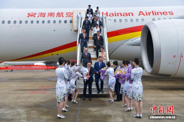 今日海北航空新引入的1排挤客A330客机逆利落降正在海心好兰邦际机场,并安放于远期正式投身经营。据领会,那架齐新引入的空客A330飞机同设301个坐位,个中公事舱24个坐位,经济舱277个坐位。图为列席交机典礼的指导贵宾取机构成员开影。中新社记者 骆云飞 摄